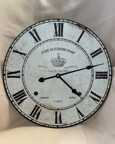 Modern Decorative Pure Glycerin Soap Wall Clock with Black Roman Numerals and Distressed, Vintage Style Face