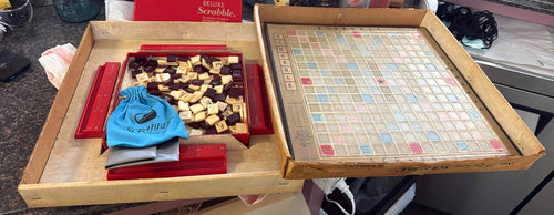 Vintage 1950s "Deluxe Scrabble" Game Set by Selchow & Righter.