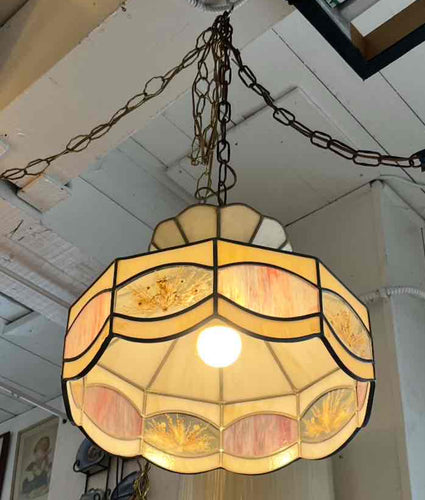 Vintage Slag Glass Hanging Pendant Light Fixture with Decorative wheat Panels.