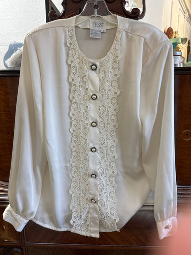 Vintage Tess Women's cream and Lace Button Down Blouse Size 8