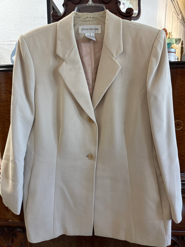 Vintage Jones New York Beige Lined Suit Jacket Size PW 14