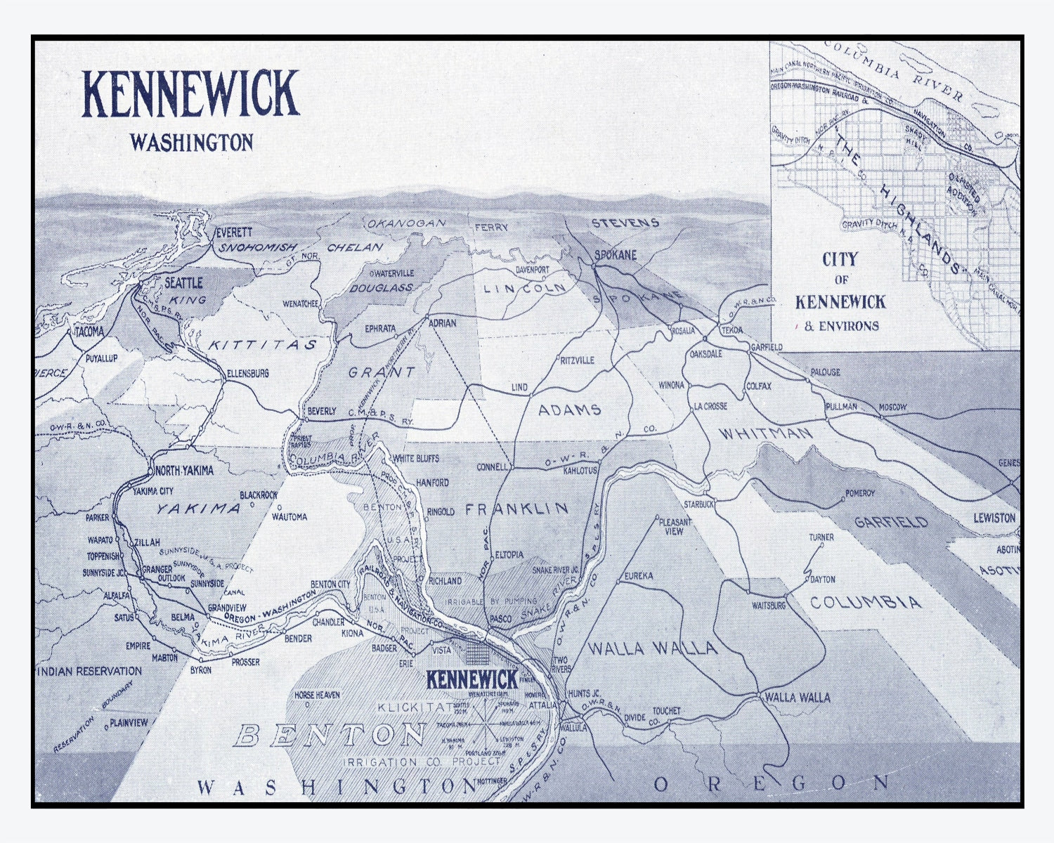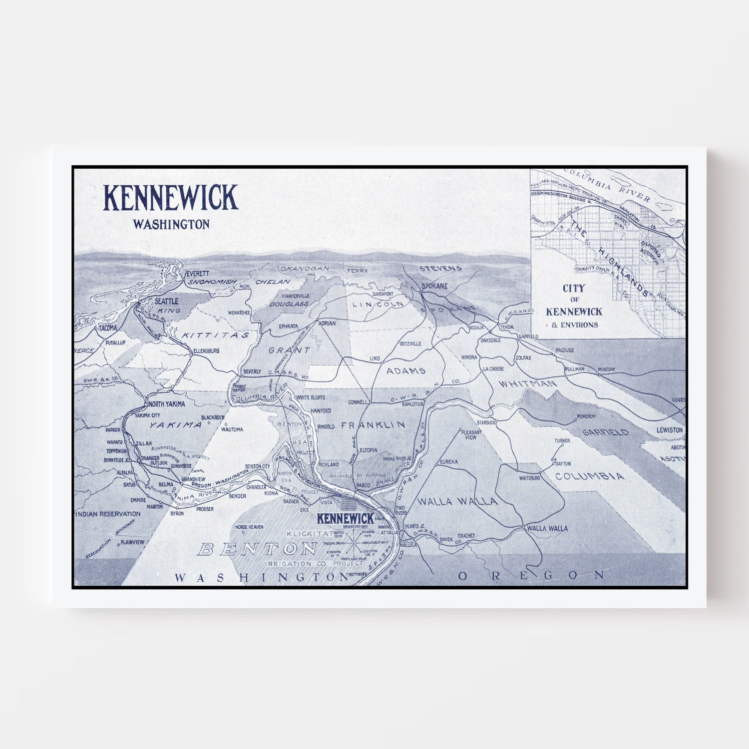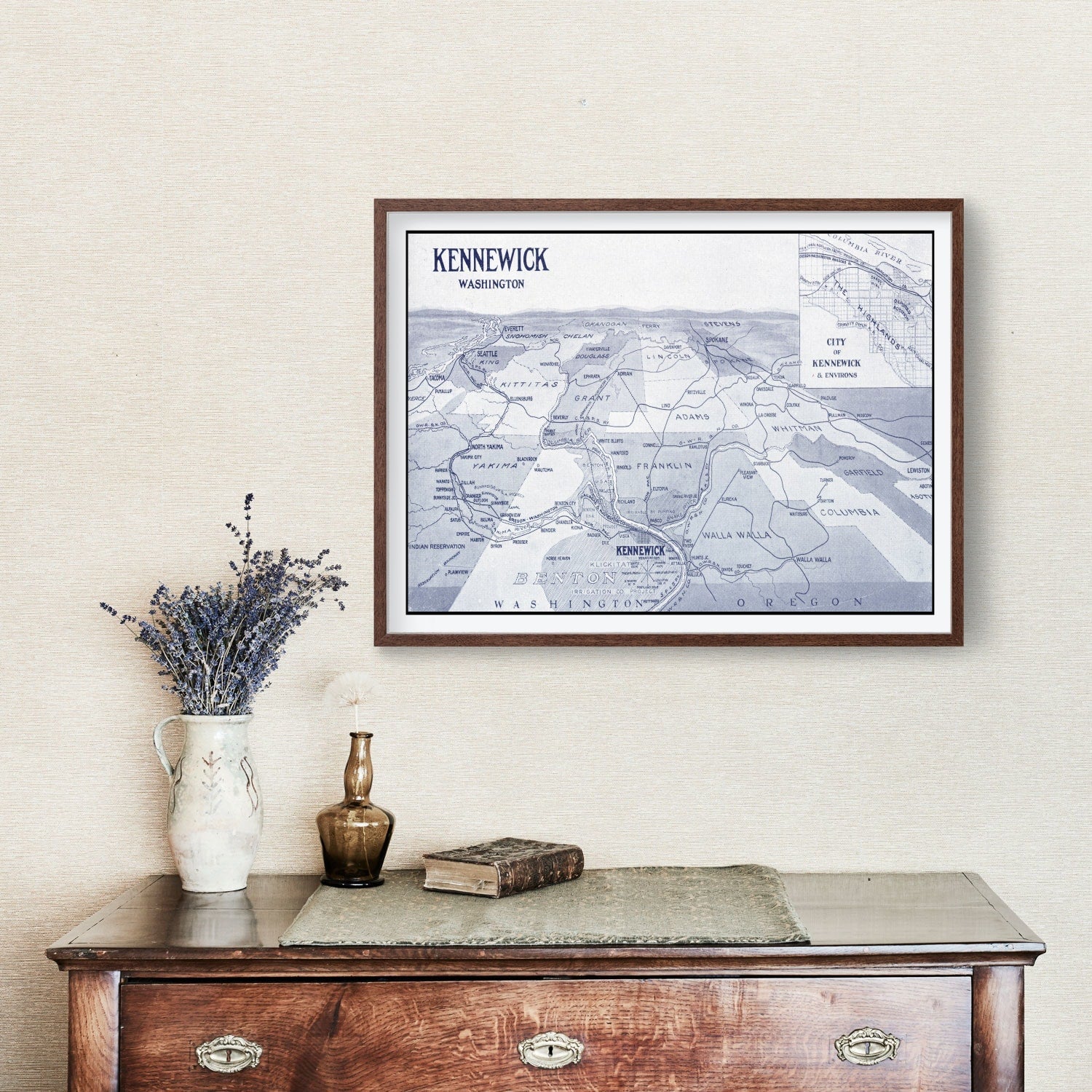 Discover a piece of Kennewick’s past with this beautifully restored vintage map from 1911. Whether you have a keen interest in local history or simply appreciate traditional home decor, this map is something special. Situated in Benton County, Washington, Kennewick has a rich history that’s celebrated through this carefully preserved print.