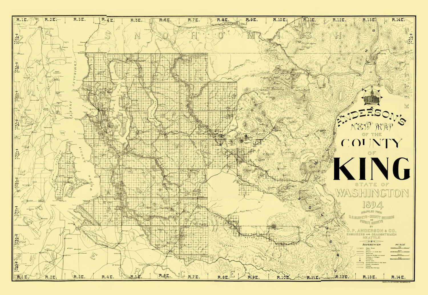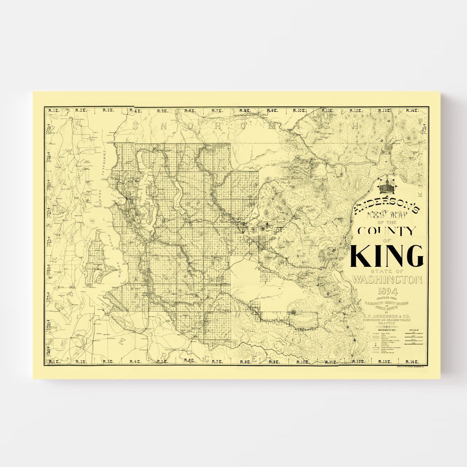 Step into the rich tapestry of history with our beautifully restored 1894 vintage map of King County, Washington. This stunning piece captures the essence of a bygone era, featuring some of the most notable areas such as Seattle and Bellevue. It's more than just a map—it's a gateway to stories from yesteryear.