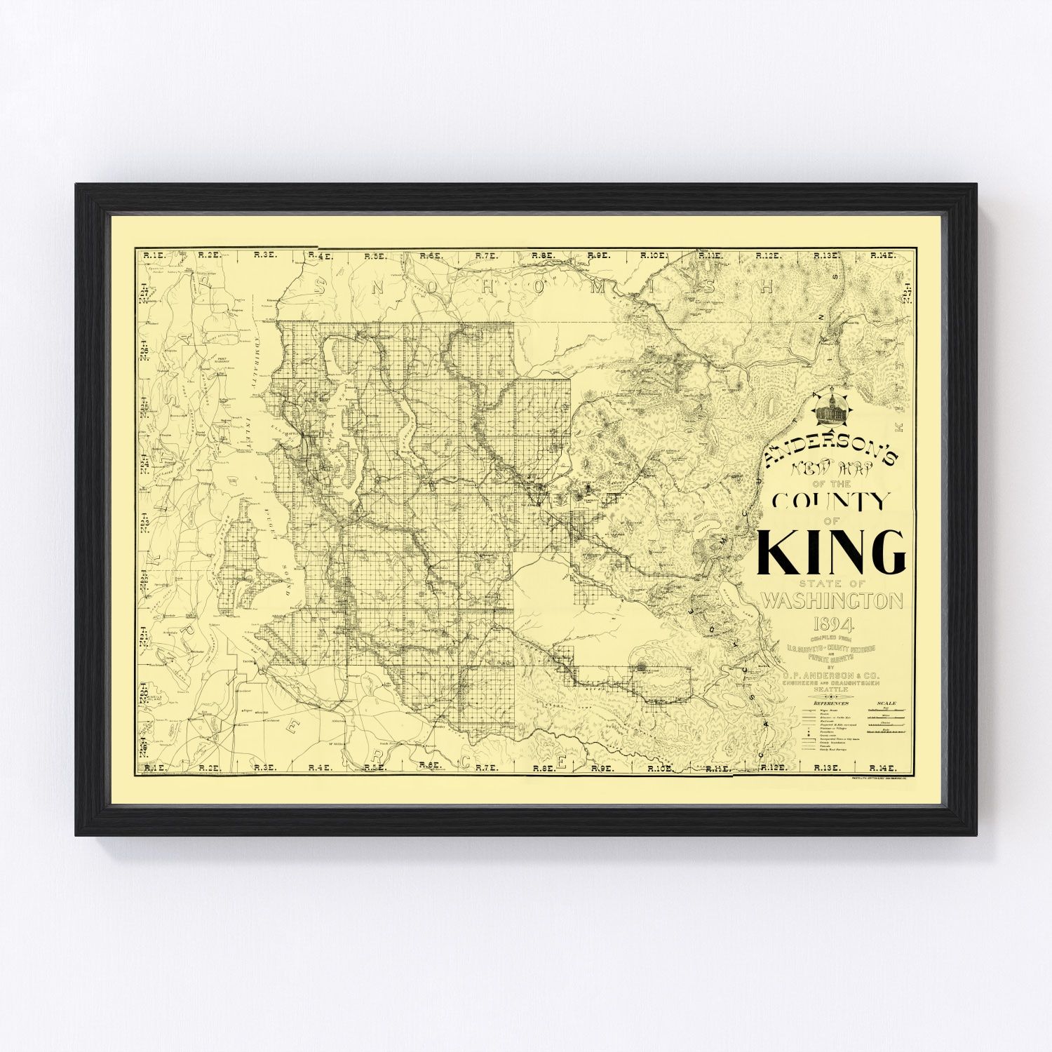 This map is not only an ideal decor choice for your home or office but also serves as an inviting conversation starter that celebrates local heritage. If you know someone who's passionate about history or has roots in King County, this makes for an unforgettable gift that they'll cherish.