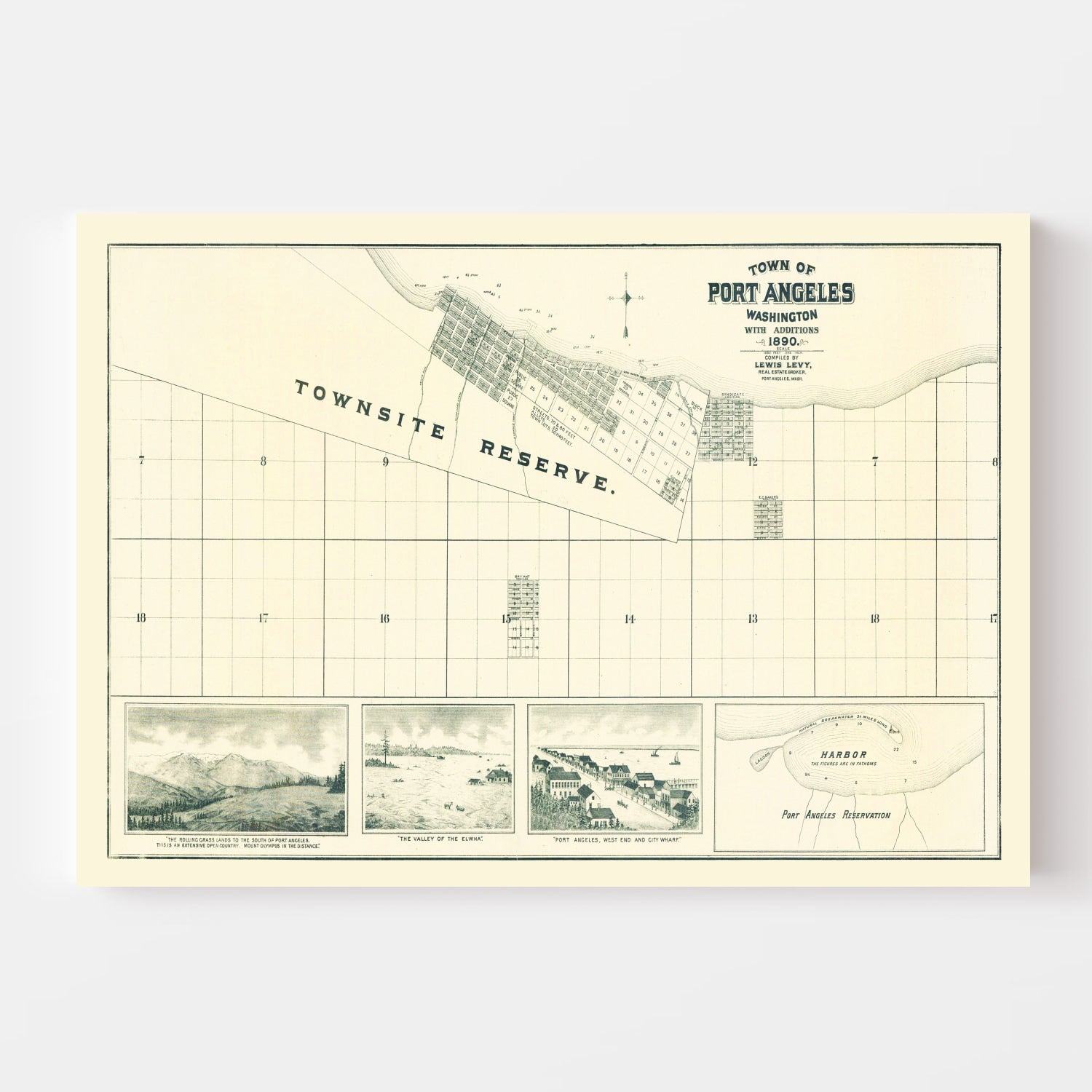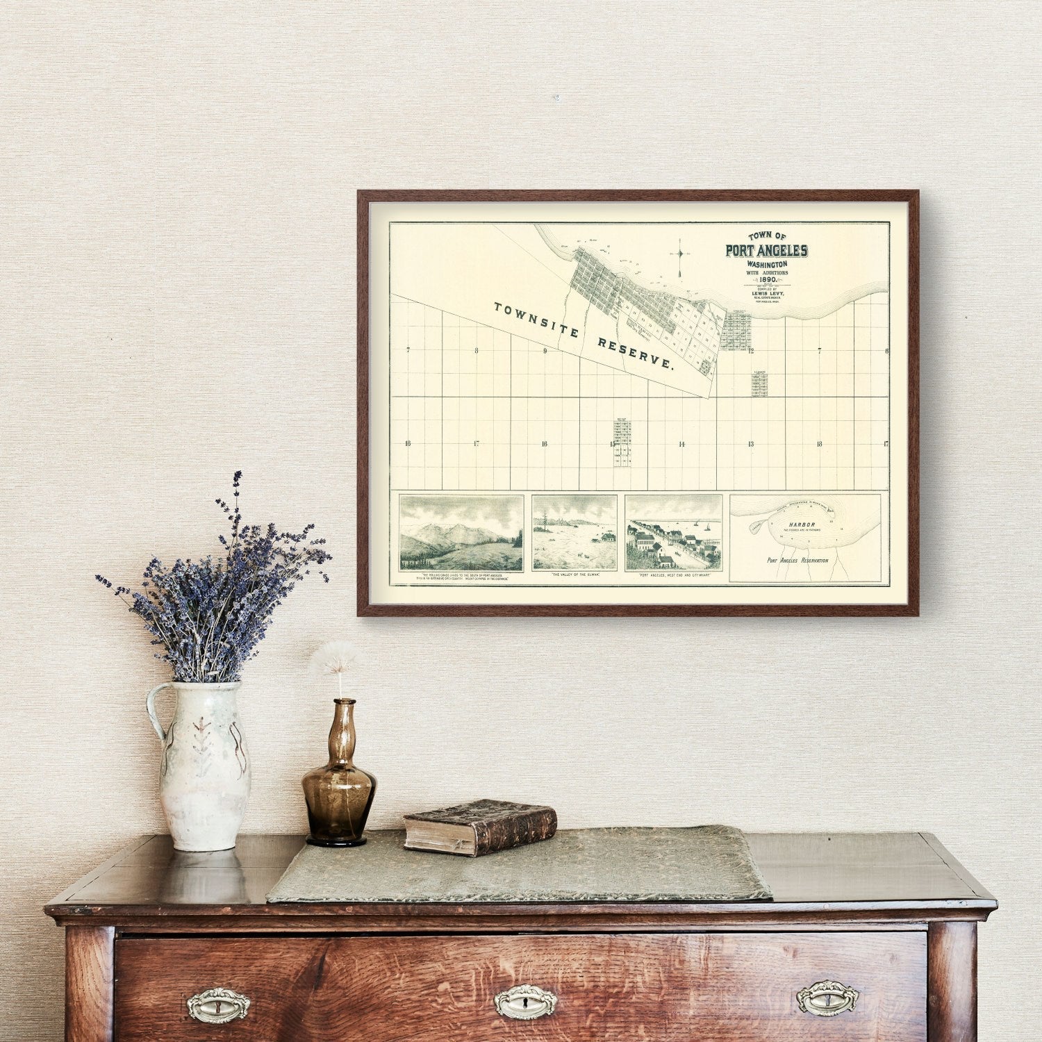 Explore a piece of history with this beautifully restored vintage map of Port Angeles, Washington. Originally crafted in 1890, this map offers a fascinating glimpse into the past of Clallam County. Whether you have roots in Washington or simply love diving into local history, this print is sure to be a cherished addition to your collection.