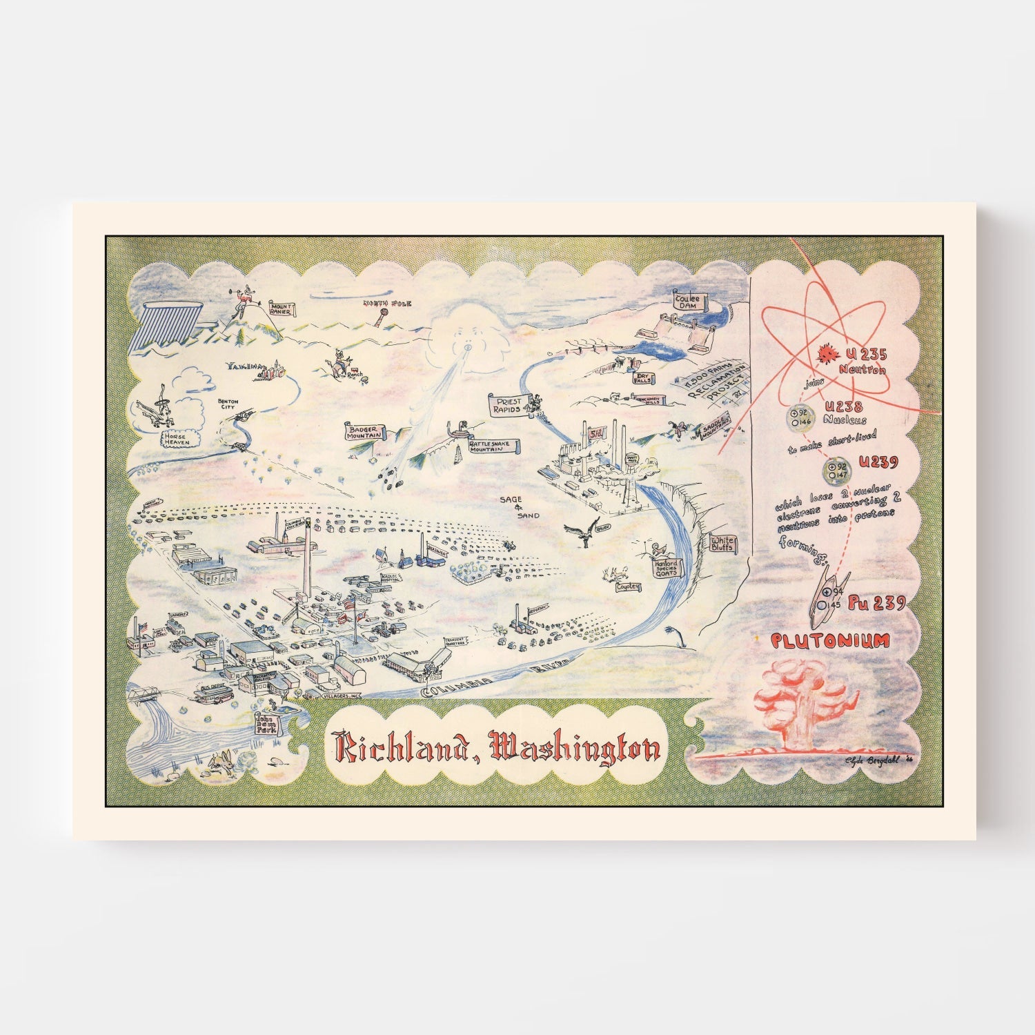 Discover the charm of yesteryear with this stunning 1946 vintage map of Richland, located in Benton County, Washington. Lovingly restored by Ted's Vintage Art, this map captures a piece of local history that's perfect for history enthusiasts and decor aficionados alike. Whether you're keen on showcasing your connection to the area or just appreciating intricate cartographic art, this print is a must-have.