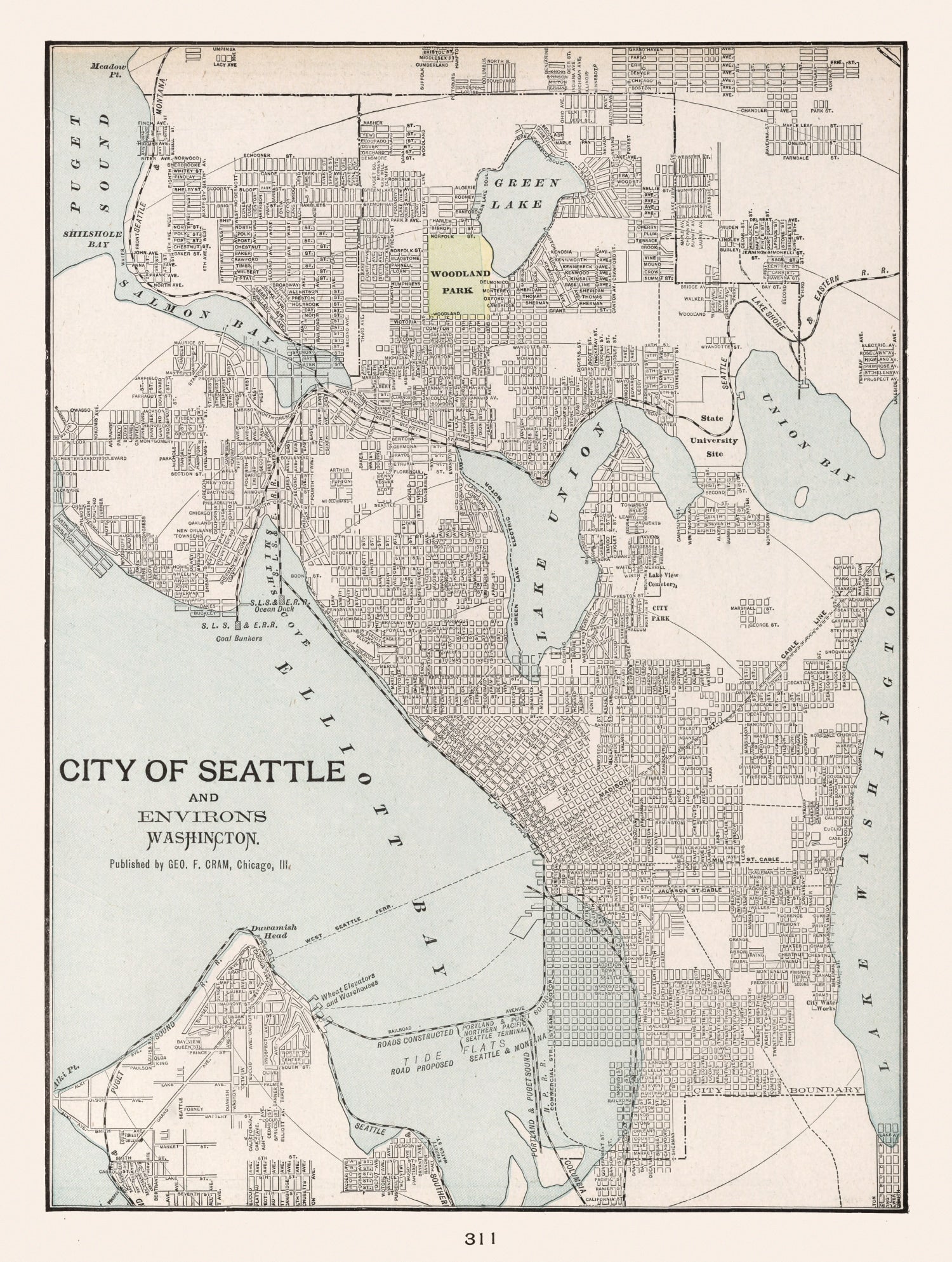 Vintage Map of Seattle, Washington 1901
