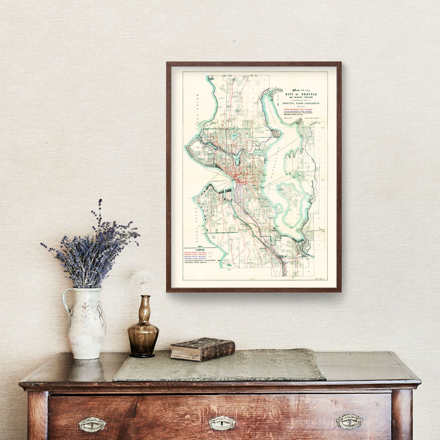 Immerse yourself in the rich history of Seattle with this exquisite 1911 vintage map. Presented by Ted's Vintage Art, this piece offers a captivating glimpse of King County within Washington State as it looked over a century ago. Perfect for history buffs or anyone who revels in local heritage, this map is an artful addition to both home and office decor.