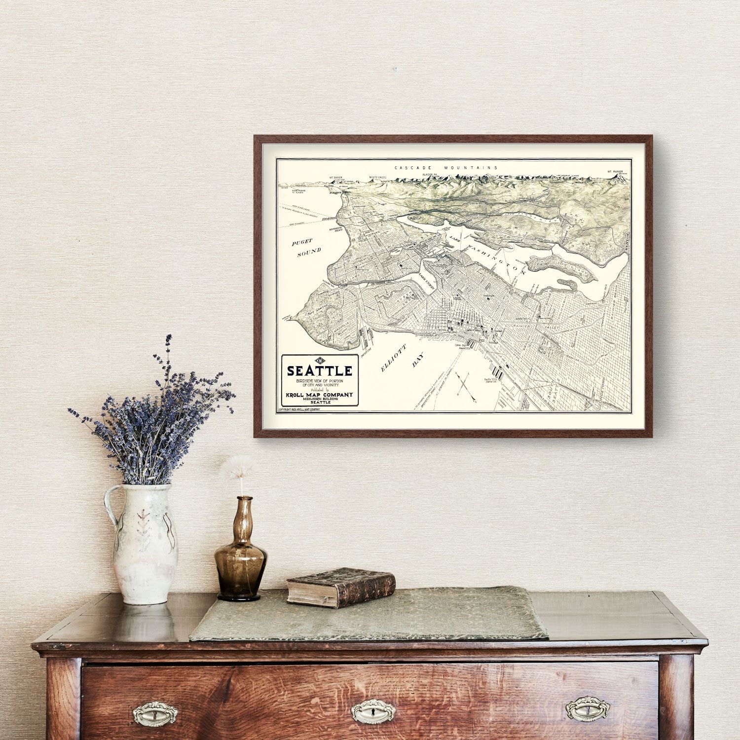 Rediscover the charm and history of Seattle with our beautifully restored 1925 vintage map. This piece transports you back to the early days of King County, Washington, making it a remarkable addition to any home or office setting. Whether you're a local history buff or just love exploring the stories of yesteryear, this map is an ideal gift that resonates.