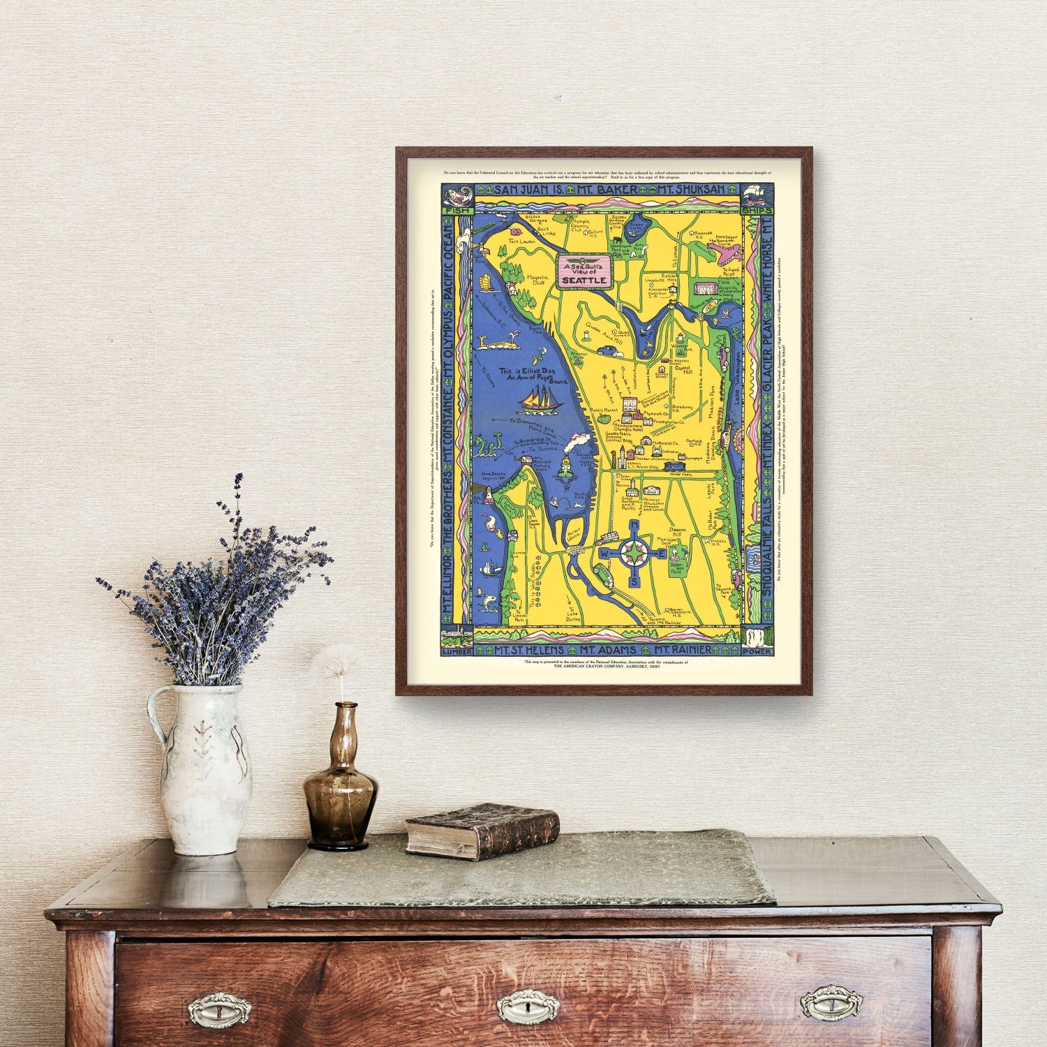Discover a slice of history with our beautifully restored vintage map of Seattle from 1927. This piece captures the unique charm of King County, Washington, as it was nearly a century ago. Digitally restored to maintain its historical essence, this map makes for an excellent gift for lovers of local history or anyone who adores beautiful decor.