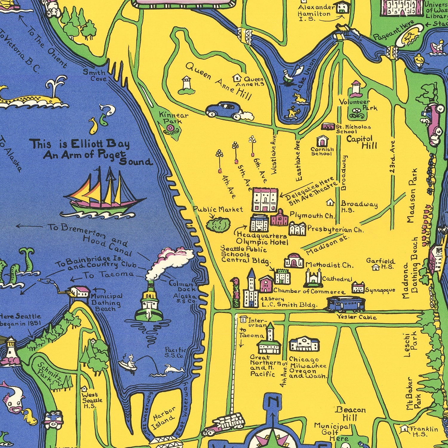 This map is more than just wall art; it's a conversation starter that brings a touch of classic elegance to your home or office. Whether you're decorating your space or sharing it with someone special, this 1927 Seattle map offers both style and substance in one brilliant package.