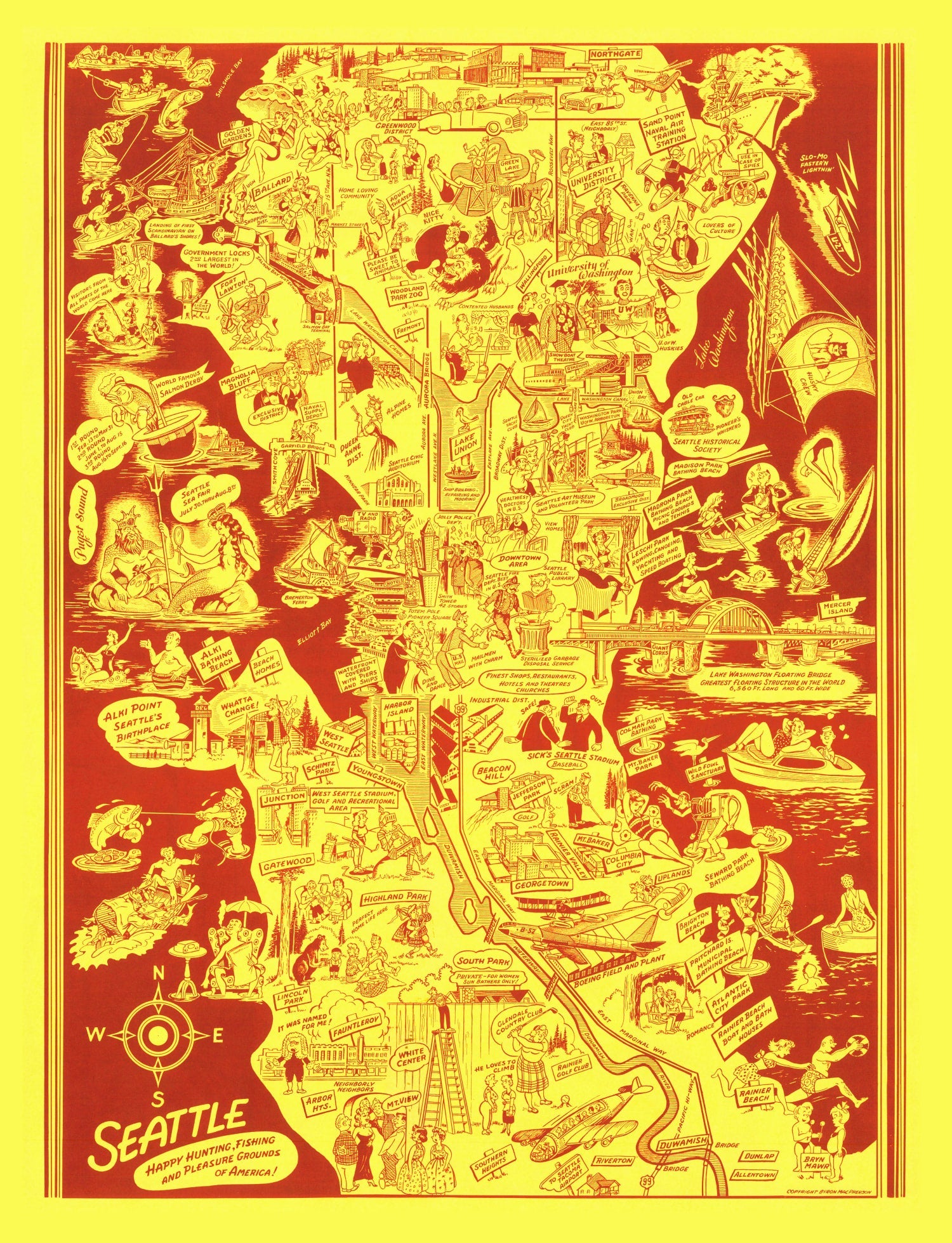 Whether you're looking to enhance your home or office space with something historically significant, this map doesn't just serve as decor—it's a conversation starter that'll charm guests and give insight into Seattle's rich heritage. Treasure the beauty of 1950s Washington with this standout piece.