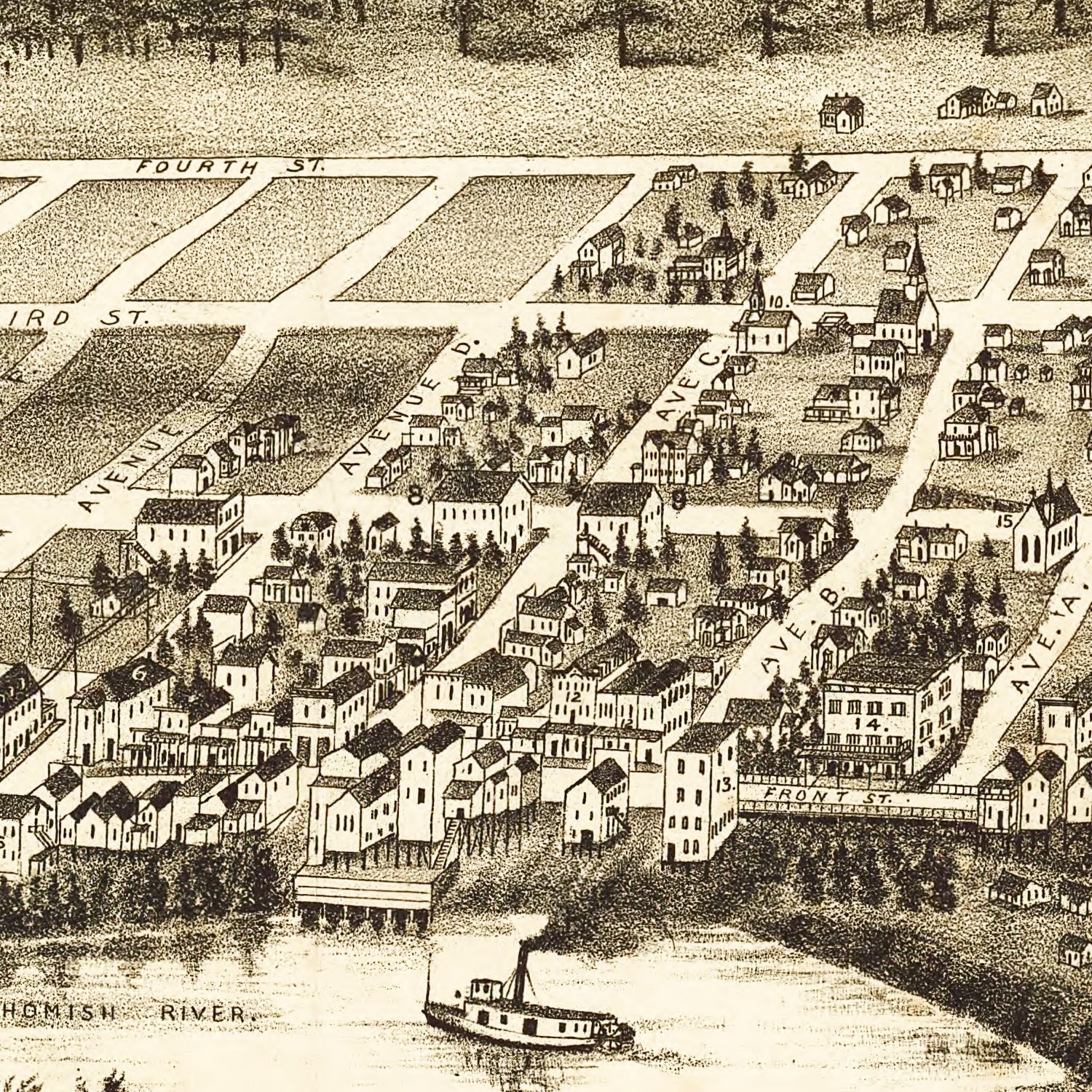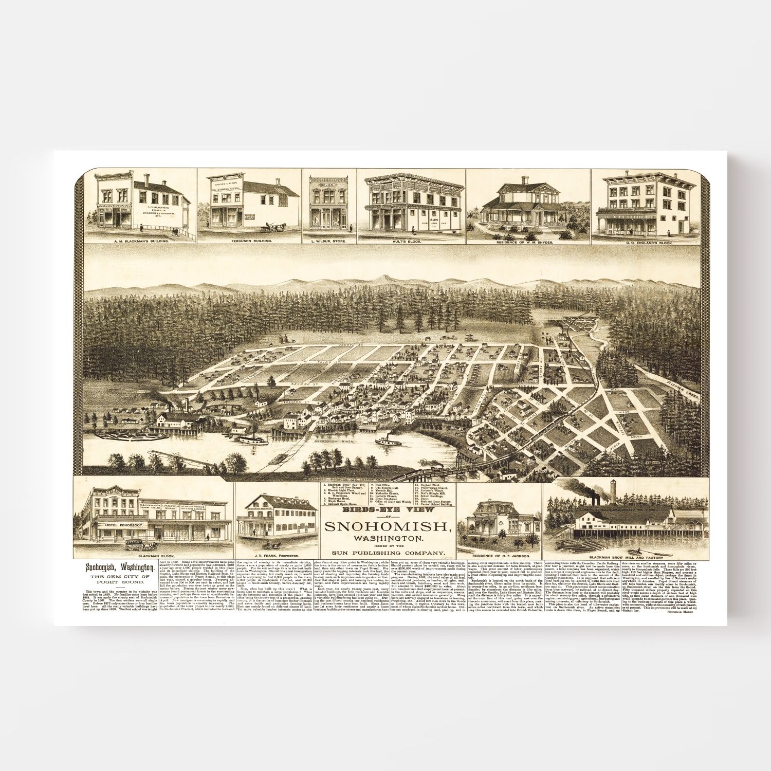 Discover a piece of Snohomish County's rich history with our beautifully restored 1890 vintage map print of Snohomish, Washington. Whether you're a history buff or just love the charm of old maps, this piece is the perfect addition to your home or office. It's crafted by hand using high-quality materials to ensure it stands out wherever you choose to hang it.