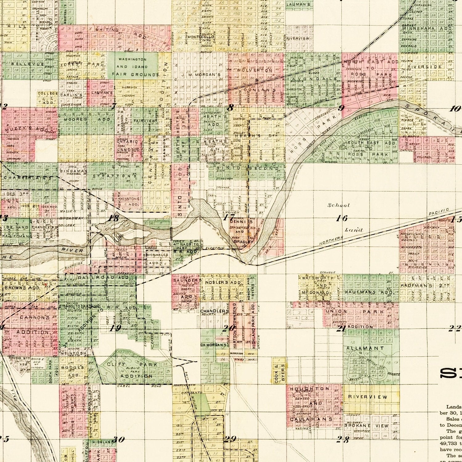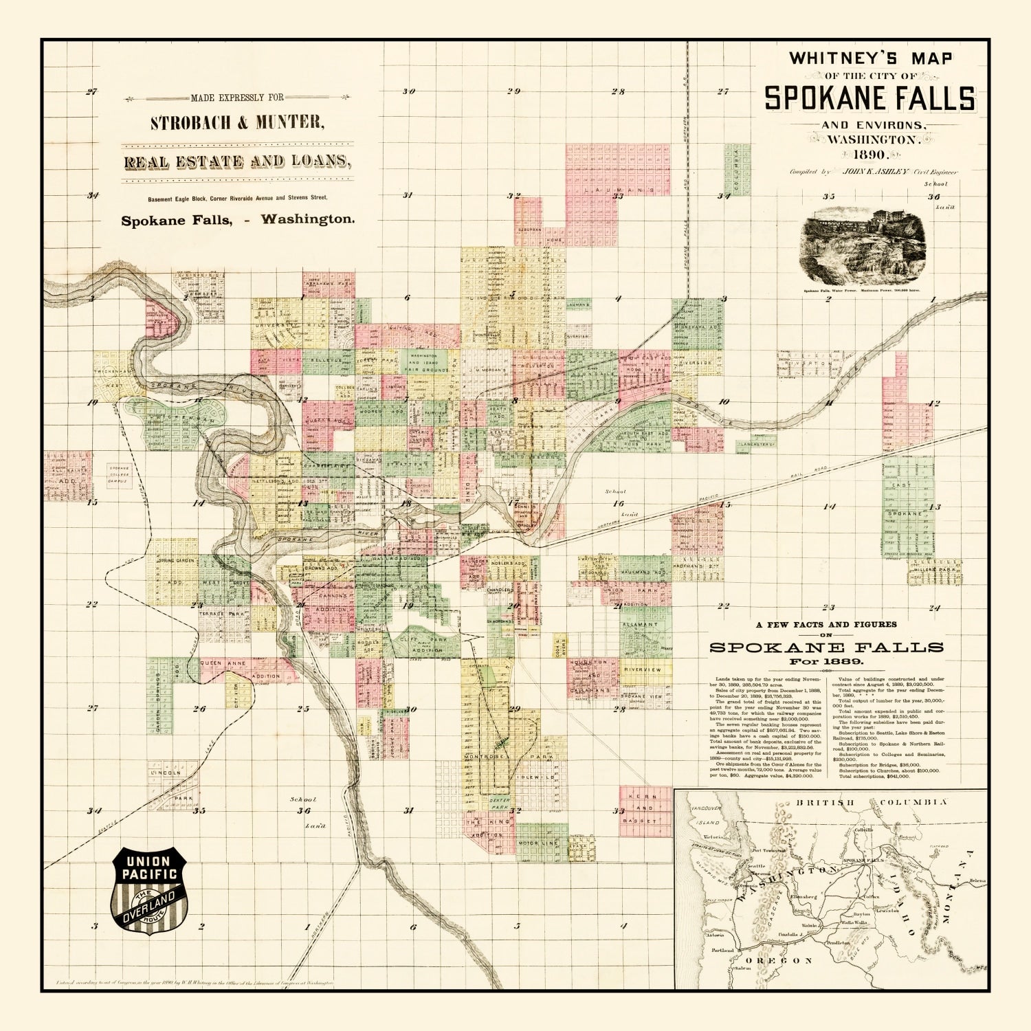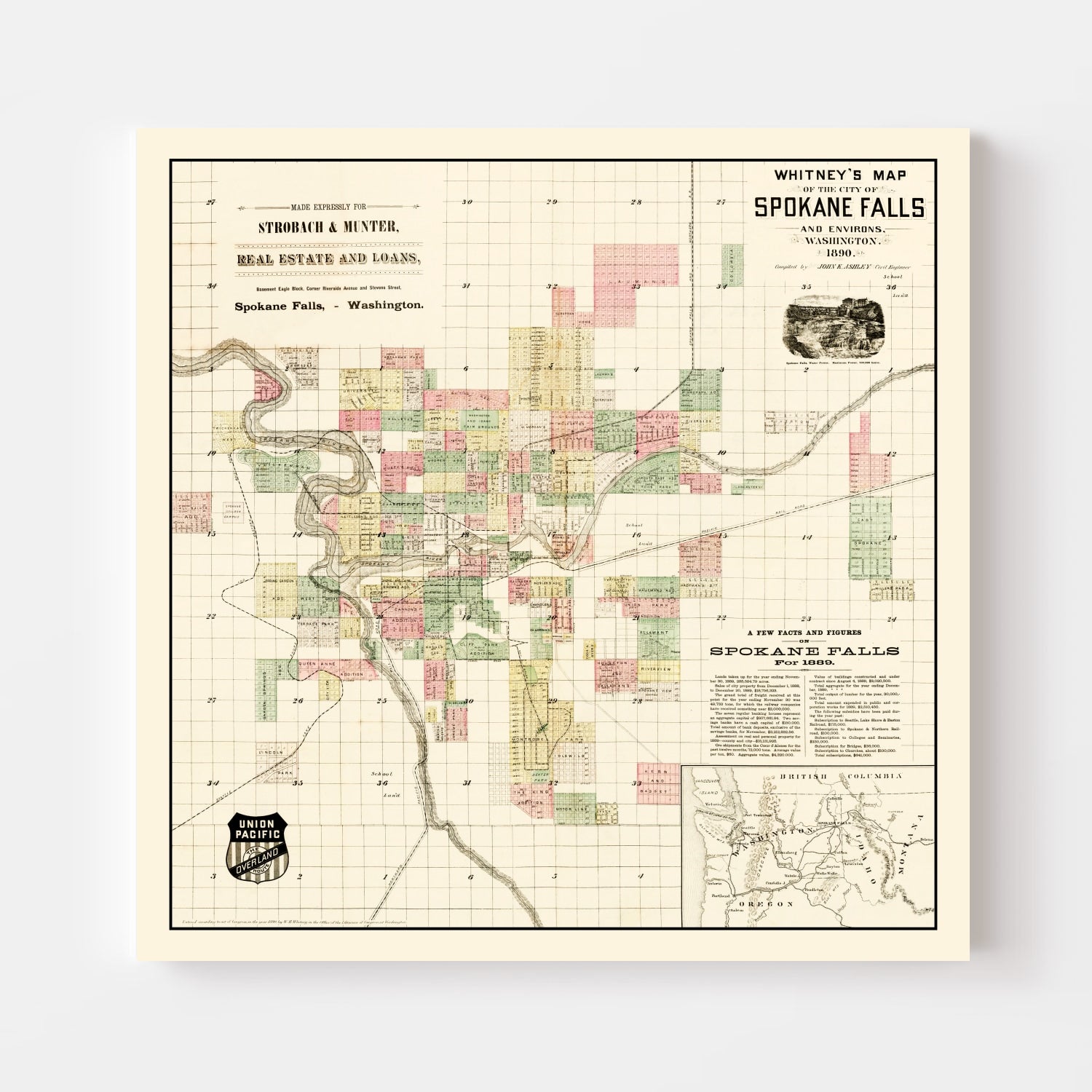 Experience a slice of history with Ted's Vintage Art's beautifully restored 1890 map of Spokane Falls. Whether you’re a history enthusiast or simply appreciate unique decor, this map is a perfect gift and addition to your home or office. Our digital restoration process turns this historical gem into an engaging conversation piece that nods to the fascinating past of Spokane County in Washington State.