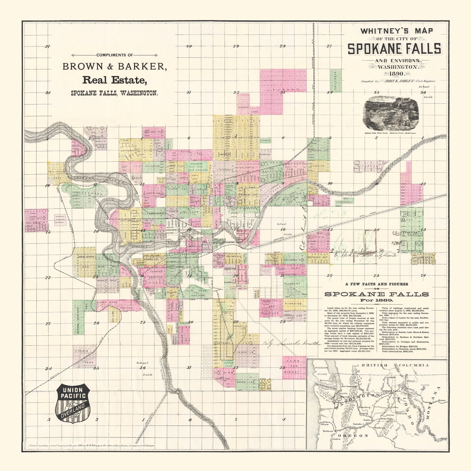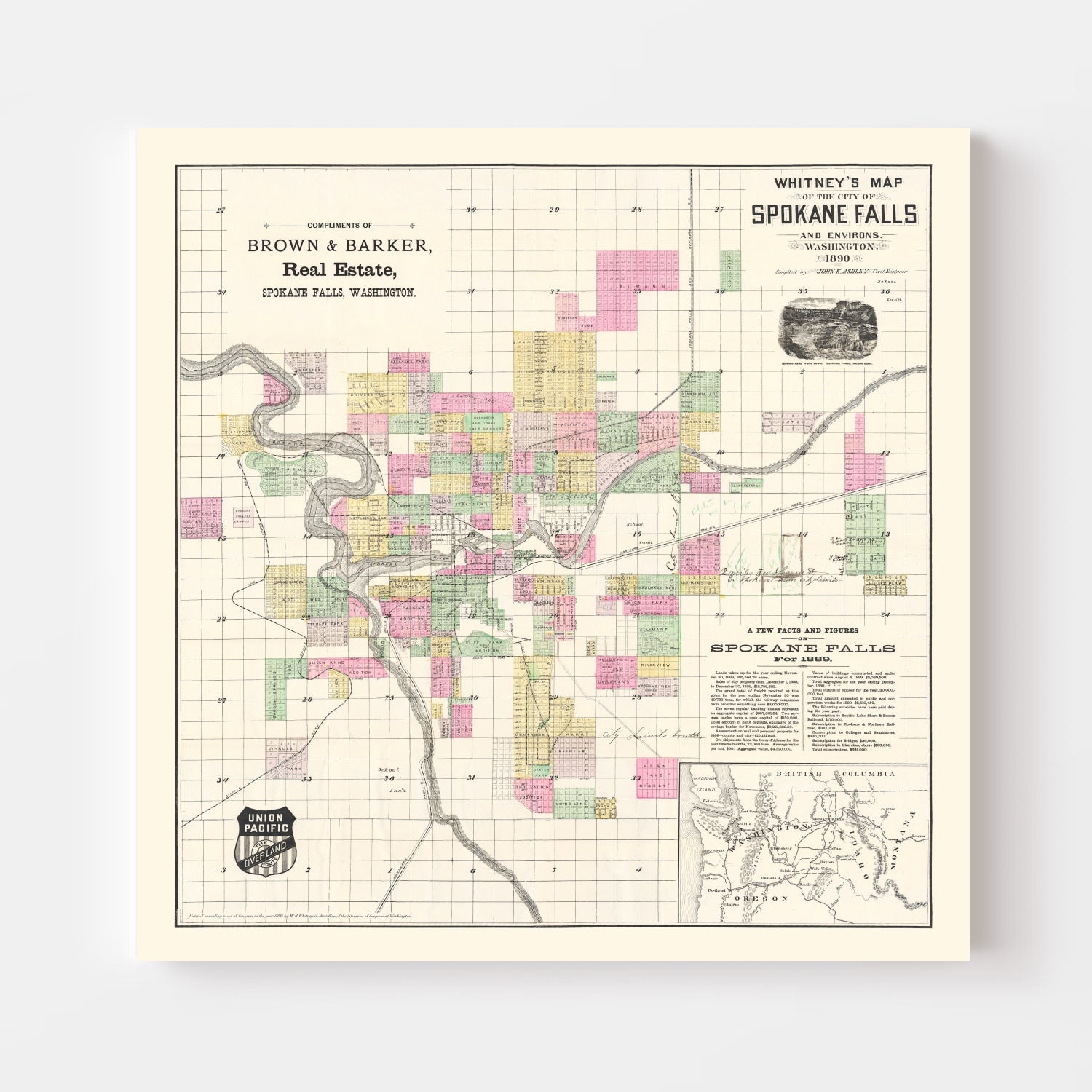 Rediscover the charming history of Spokane Falls with this meticulously restored 1890 vintage map print. Crafted by Ted's Vintage Art, this piece is not only a window into the past but also an elegant addition to your home or office decor. Whether you're from Spokane County or just love exploring maps, it's sure to become a fascinating conversation starter among guests.
