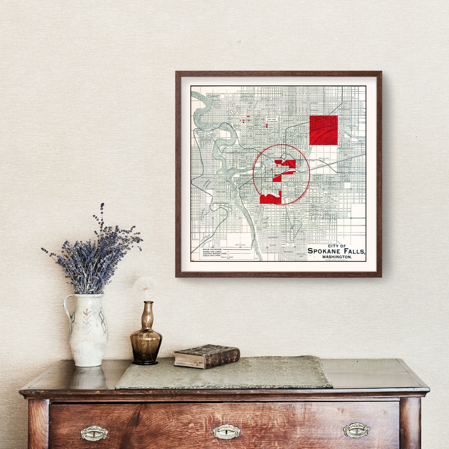 Step back in time with our beautifully restored 1890 map of Spokane Falls, crafted for the history lover in your life. This vintage masterpiece, showcasing the rich tapestry of Spokane County in Washington, is a fantastic way to bring a touch of local nostalgia into your home or office.