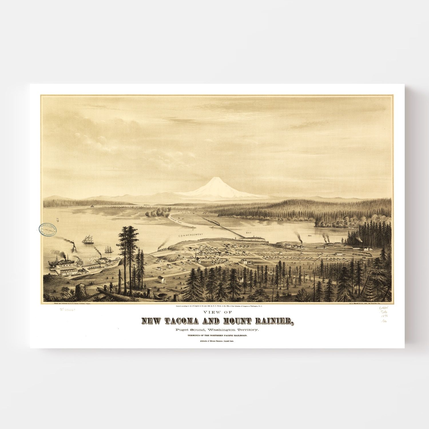 Discover a piece of history with this beautifully restored vintage map of Tacoma, nestled in Pierce County, Washington, from the year 1878. Offering a unique glimpse into yesteryear's cityscape, this map is perfect for anyone who loves local history or simply appreciates timeless decor. Whether you're decking out your home office or adding flair to your living room, it's sure to be a conversation starter.
