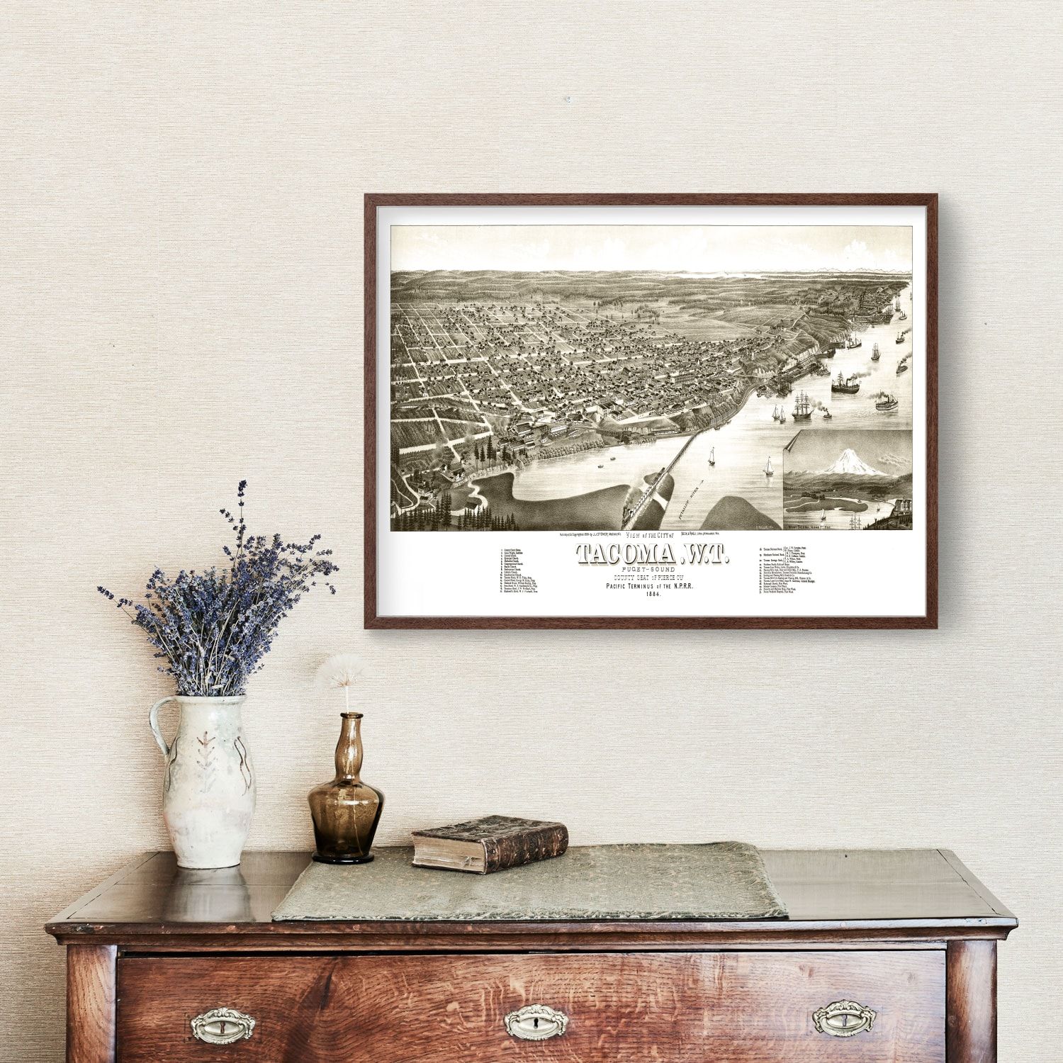 Prefer something minimalist? Our unframed prints on high-quality matte paper offer a sleek and versatile way for you or someone special to enjoy Tacoma’s storied past every day. This vintage map makes an ideal gift for anyone who appreciates the allure of historical treasures.