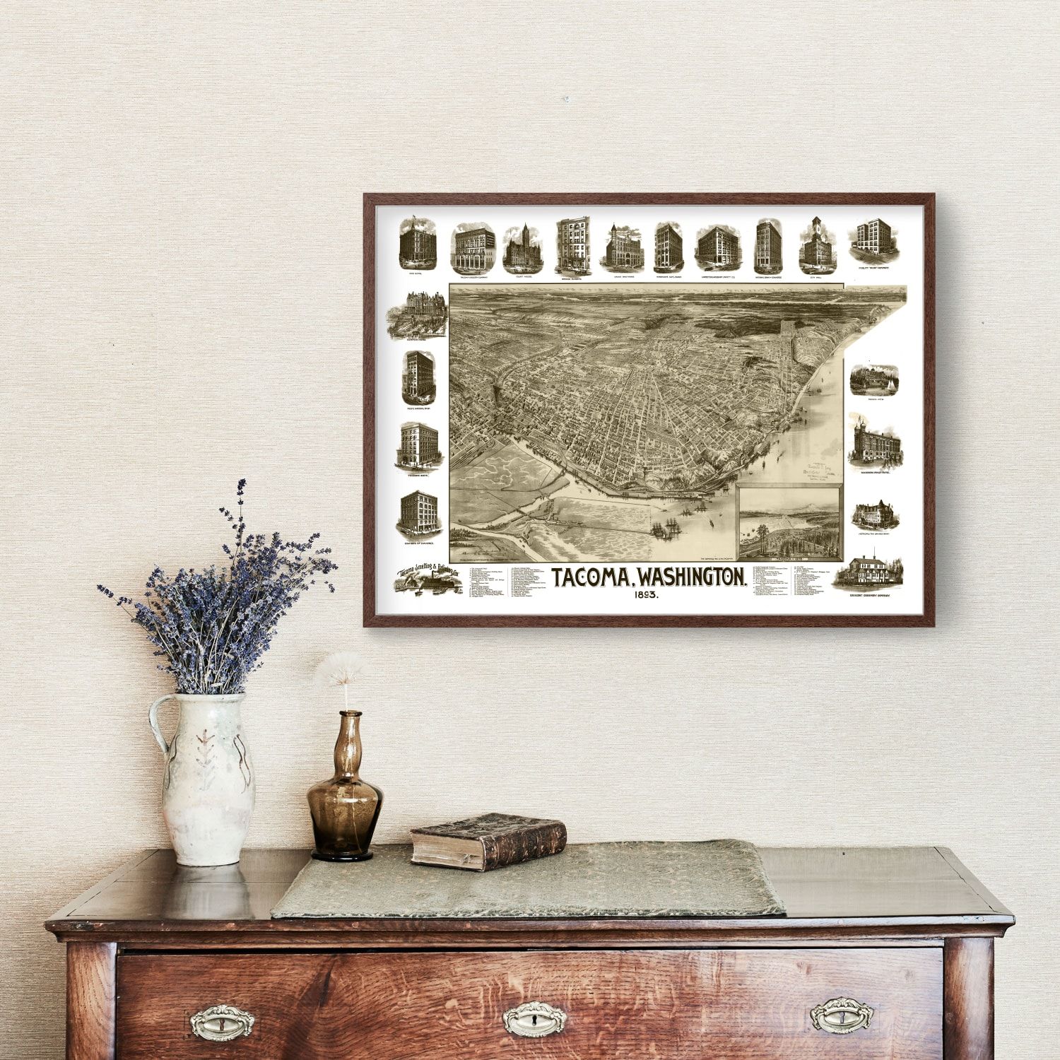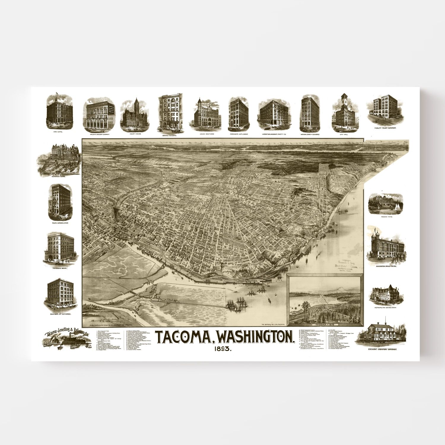 Step back in time with our beautifully restored vintage map of Tacoma, Washington, from 1893. Perfectly capturing the essence of historic Pierce County, this map offers a charming look into the past while adding a sophisticated touch to your space. Ideal for history enthusiasts or anyone with a love for Tacoma's heritage, this piece is both eye-catching and informative.