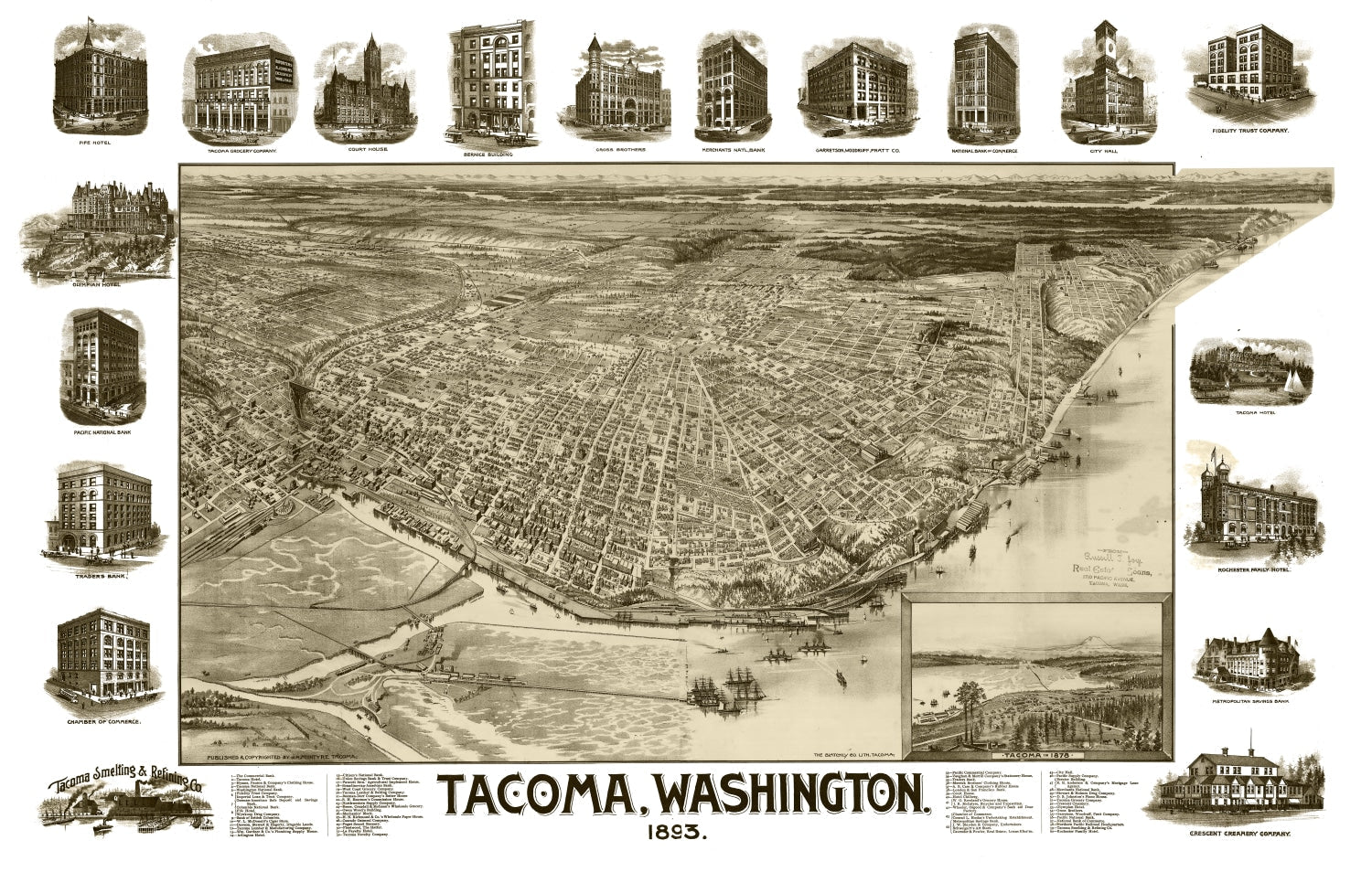 • Load image into Gallery viewer, Vintage Map of Tacoma, Washington 1893