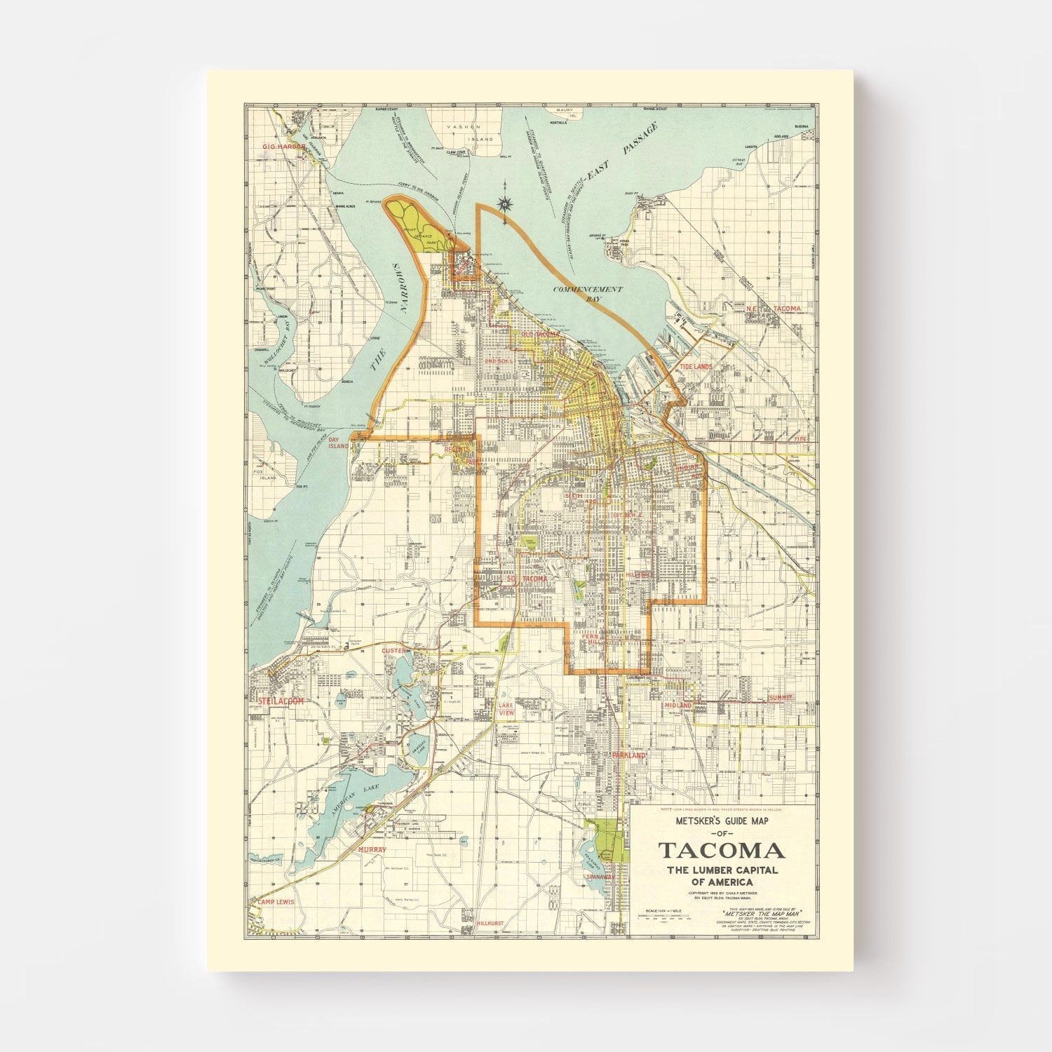 This vintage map isn't just decor; it's also a conversation starter that celebrates Tacoma's rich local history. It makes for a thoughtful gift that anyone who loves exploring historical locales will appreciate. Bring a piece of 1923 Tacoma into your space today and enjoy reliving its storied past every time you glance at your wall.