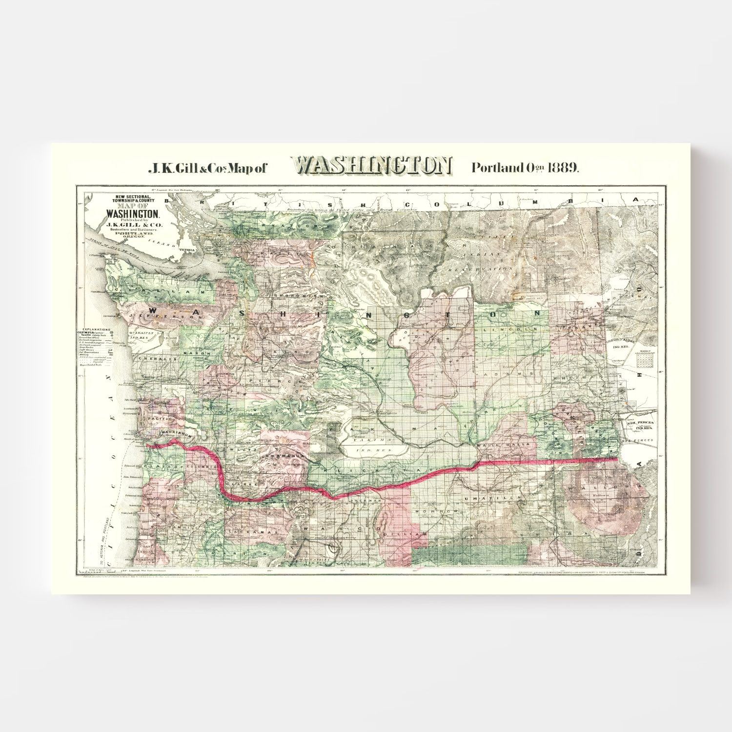 Discover the charm of local history with our meticulously restored 1889 vintage map of Washington. Perfect for history buffs or anyone who loves a touch of tradition in their home or office, this map is both educational and decorative. Digitally revitalized to capture every detail from the past, it serves as a captivating conversation starter that pays homage to Washington's storied background.