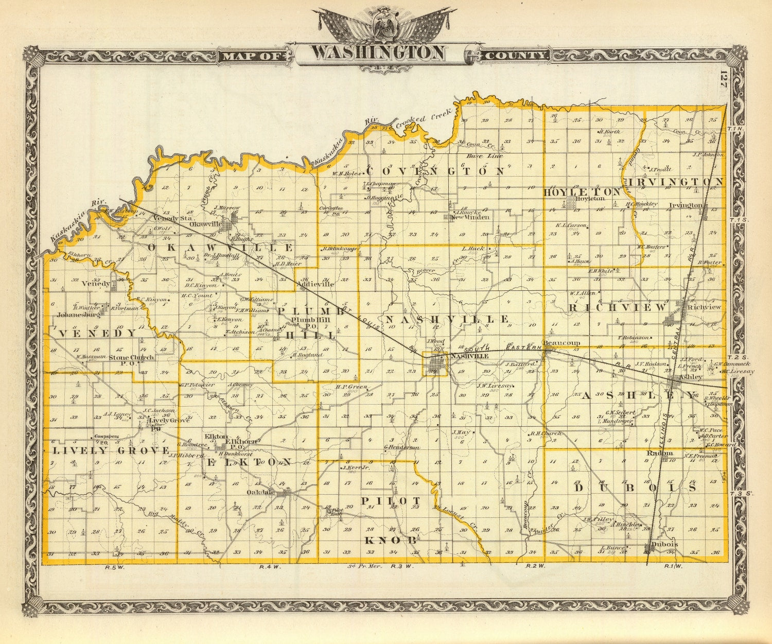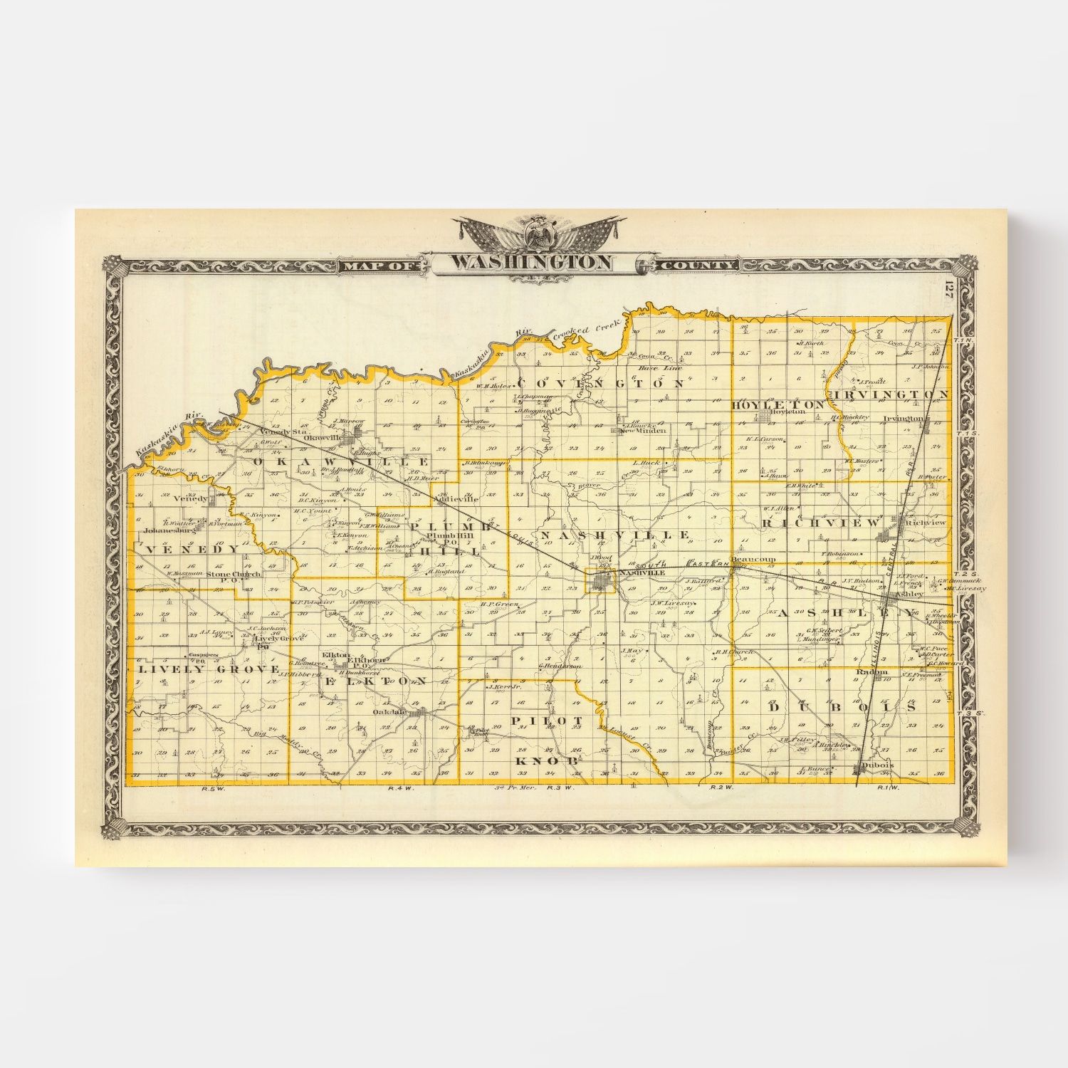 Vintage Map of Washington County, Illinois 1876