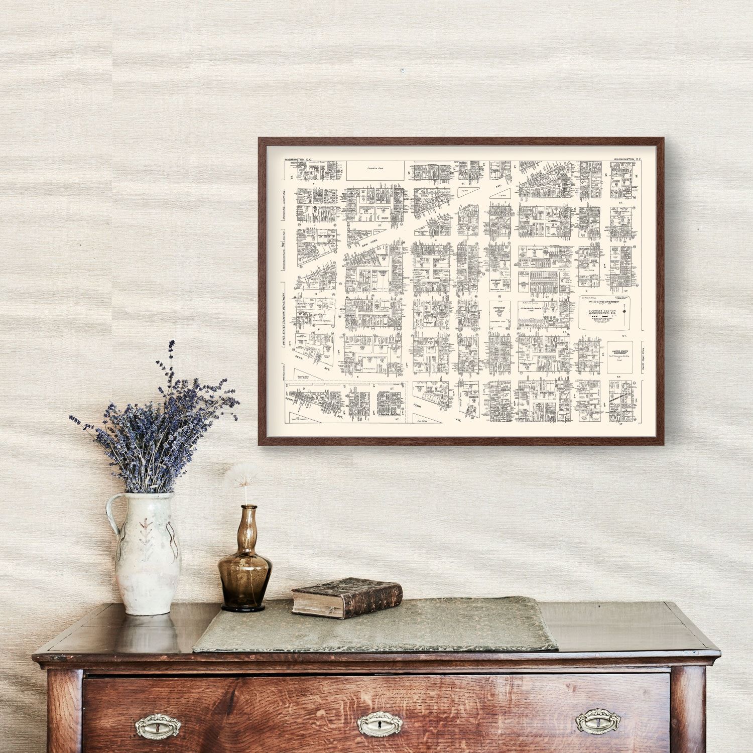 This map not only celebrates Washington D.C.'s storied past but also adds a touch of elegance wherever it's displayed. An ideal fusion of artistry and history awaits you!